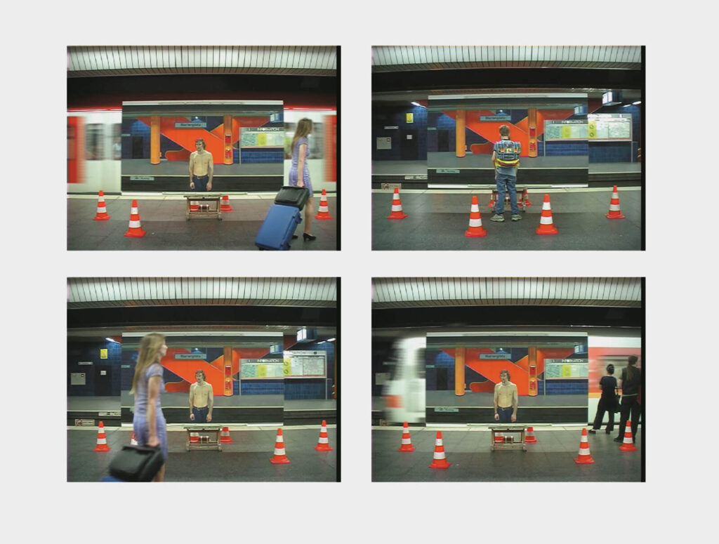 Parallel to the exhibition “Offensive Painting” at the municipal art gallery Lothringer13 in Munich, an invitation is being given to the temporary studio in the Marienplatz S-Bahn station – a staged public model situation with semi-nude figures, in order to paint the picture “Ecce homo, Marienplatz”.