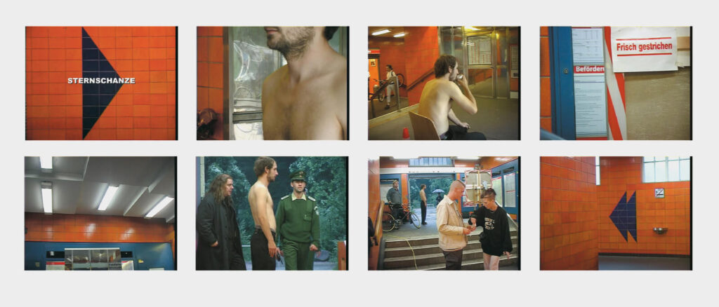 Stills from the video work „Sternschanze, Ecce homo (Film)“, Sternschanze underground station, Hamburg, 2001